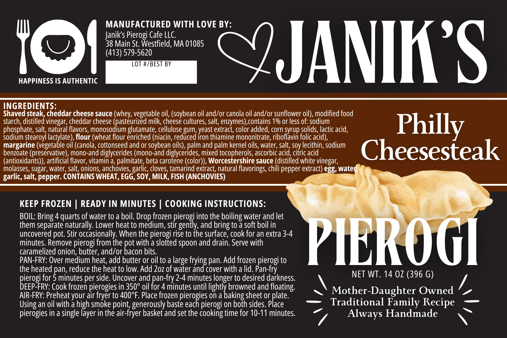Introducing our mouthwatering Philly Cheesesteak Pierogi, a modern creation inspired by the iconic American Philly cheesesteak sandwich! Each pierogi is generously filled with tender, seasoned beef sourced from a local butcher, sautéed onions, and gooey melted cheese, perfect for meat lovers. Serve panfried just the way it is or dip in sour cream for more creaminess.
