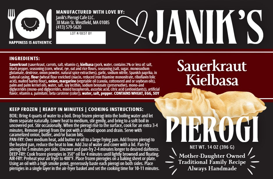 Experience the hearty flavors of our Sauerkraut Kielbasa Pierogi, a delicious twist on a classic favorite! Each pierogi is generously filled with a savory blend of tangy sauerkraut and flavorful kielbasa, creating a satisfying combination that’s perfect for any meal.